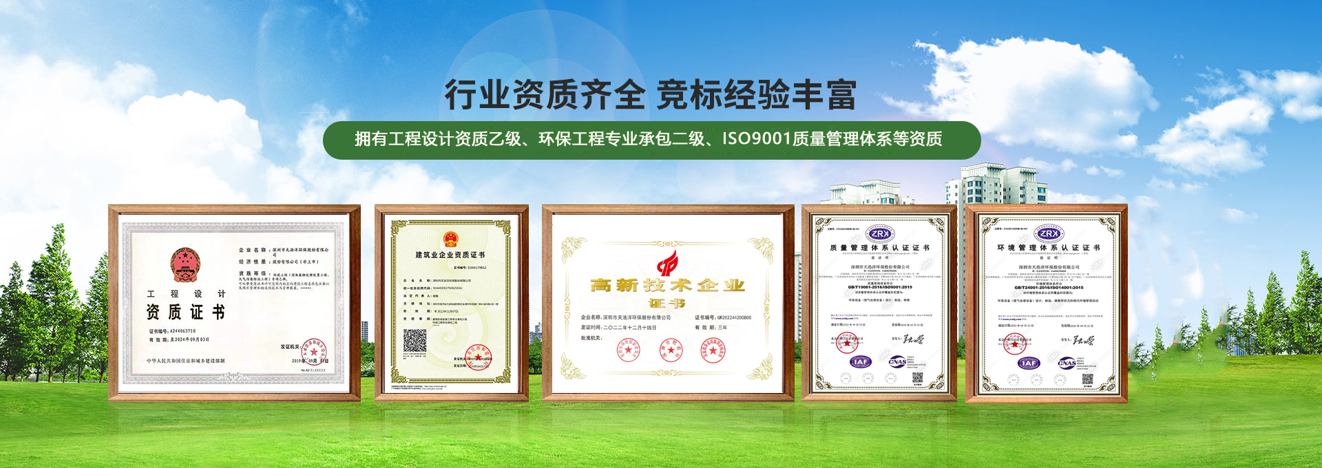 • 具備環(huán)保工程專業(yè)承包二級(jí)資質(zhì)、建筑機(jī)電安裝工程專業(yè)承包三級(jí)、工程設(shè)計(jì)資質(zhì)(大氣/固廢乙級(jí))等資質(zhì)齊全